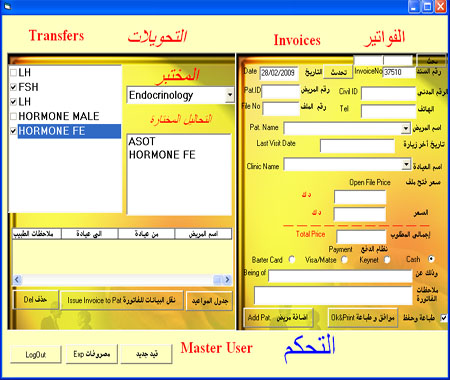 بعميل أو مورد معين وفى حالة الرغبة فى إستخراج فاتورة للعميل وكذلك ترحيل الفواتير