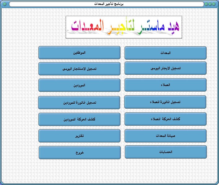 البرنامج على كل العمليات التي تتم على المعدات وتأجيرها وكذلك تقارير عن كل معده من
